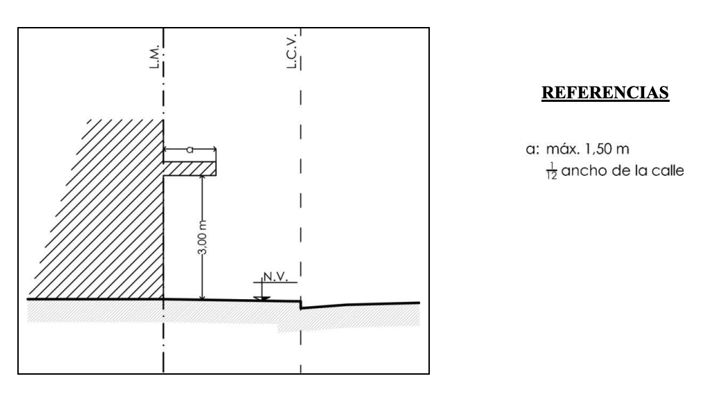 GRÁFICO Nº 11: FACHADAS: Saliente de Aleros y Marquesinas en Planta Baja.-